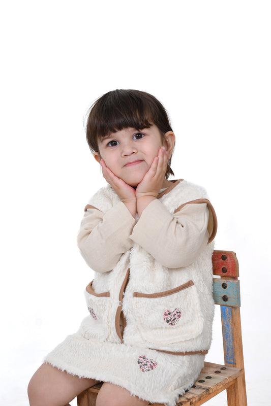 Kalp Detaylı Organik Yelek ve Etek Takımı