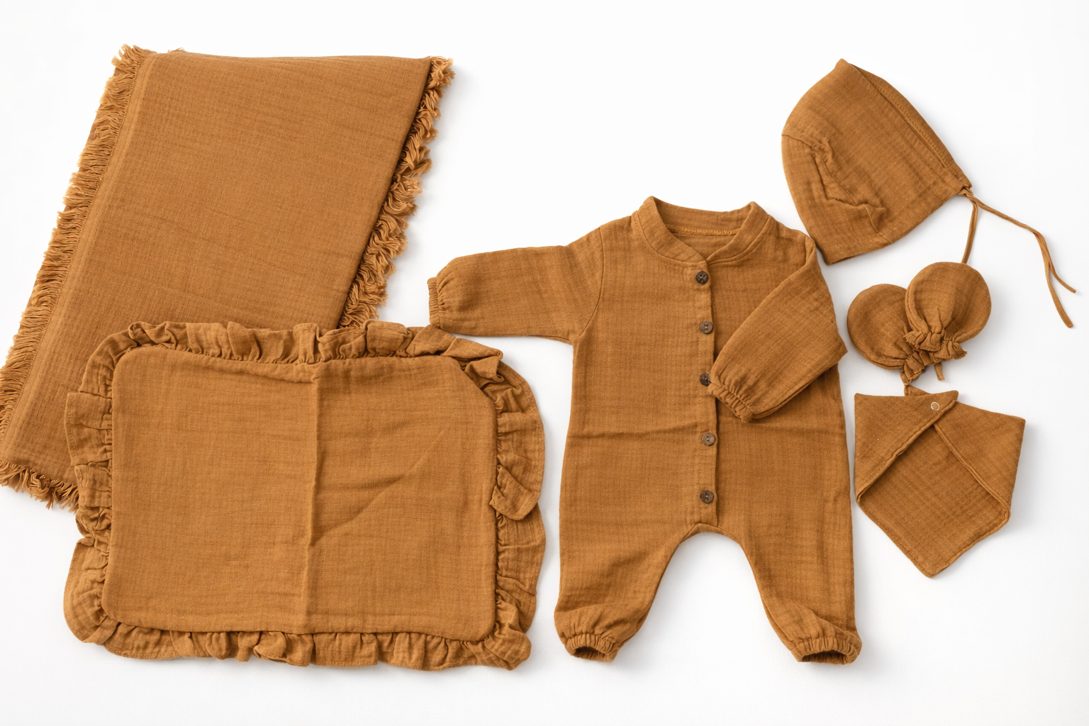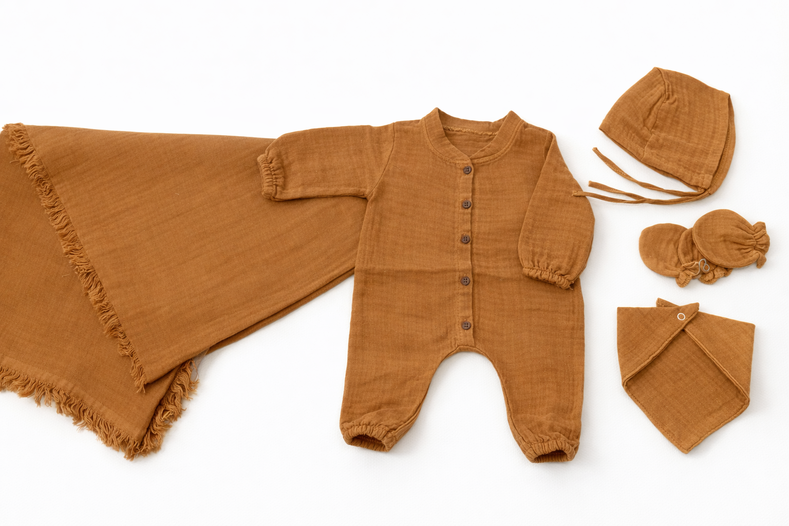 Bebeğinizin ilk günleri için özel olarak hazırlanan müslin yenidoğan setimiz, yumuşak dokusu ve nefes alabilen yapısıyla miniklerin hassas cildi düşünülerek tasarlanmıştır.