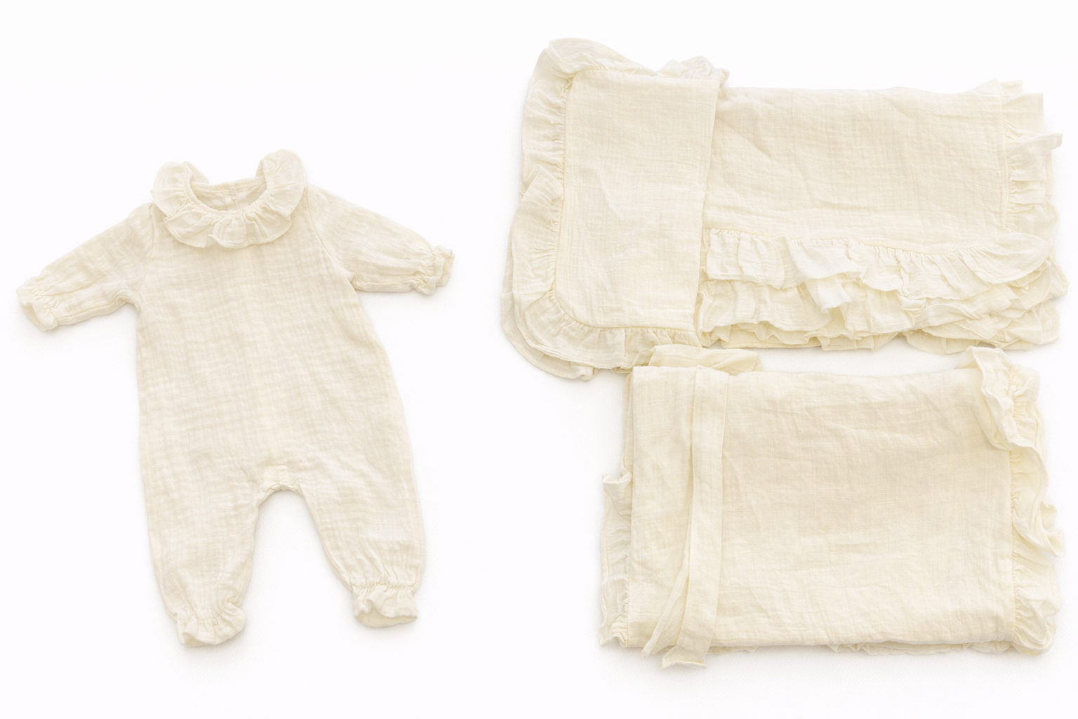Bebeğinizin ilk günleri için özel olarak hazırlanan müslin yenidoğan setimiz, yumuşak dokusu ve nefes alabilen yapısıyla miniklerin hassas cildi düşünülerek tasarlanmıştır.