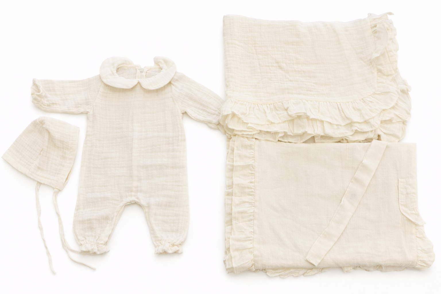 Bebeğinizin ilk günleri için özel olarak hazırlanan müslin yenidoğan setimiz, yumuşak dokusu ve nefes alabilen yapısıyla miniklerin hassas cildi düşünülerek tasarlanmıştır.
