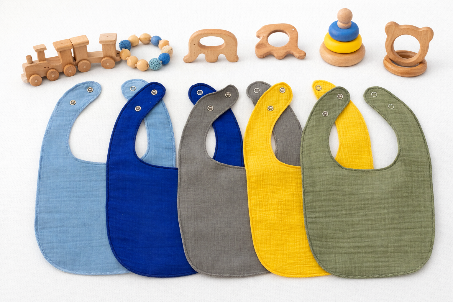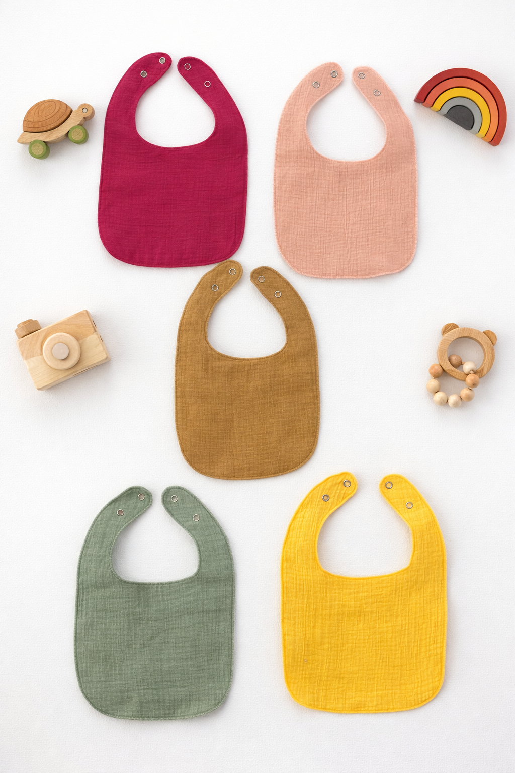 %100 Pamuk - Sıvı Geçirmez -Mama&Salya Önlüğü - 5'li Set