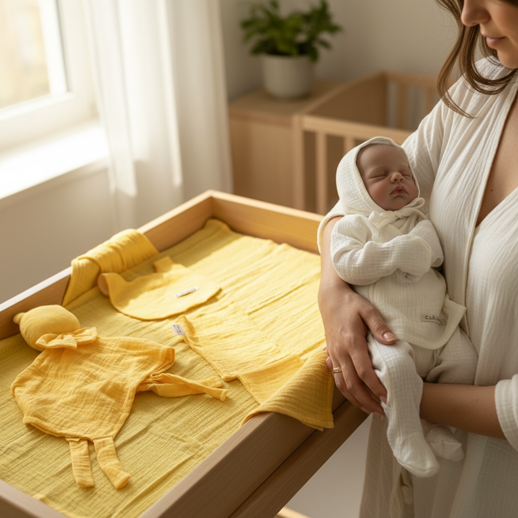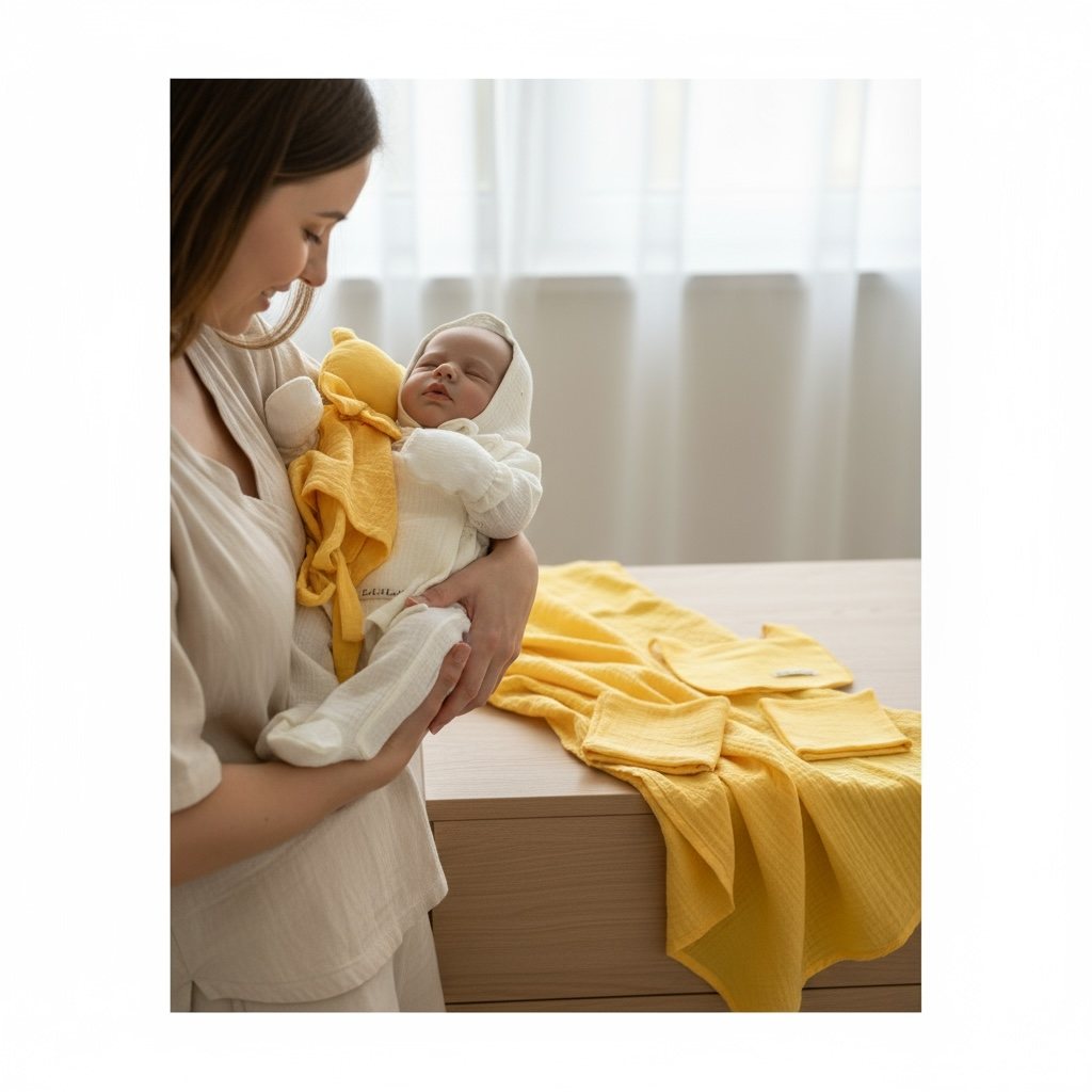 👶 İlk Dokunuş En Yumuşak Olsun: Çift Kat Müslin Yenidoğan Set