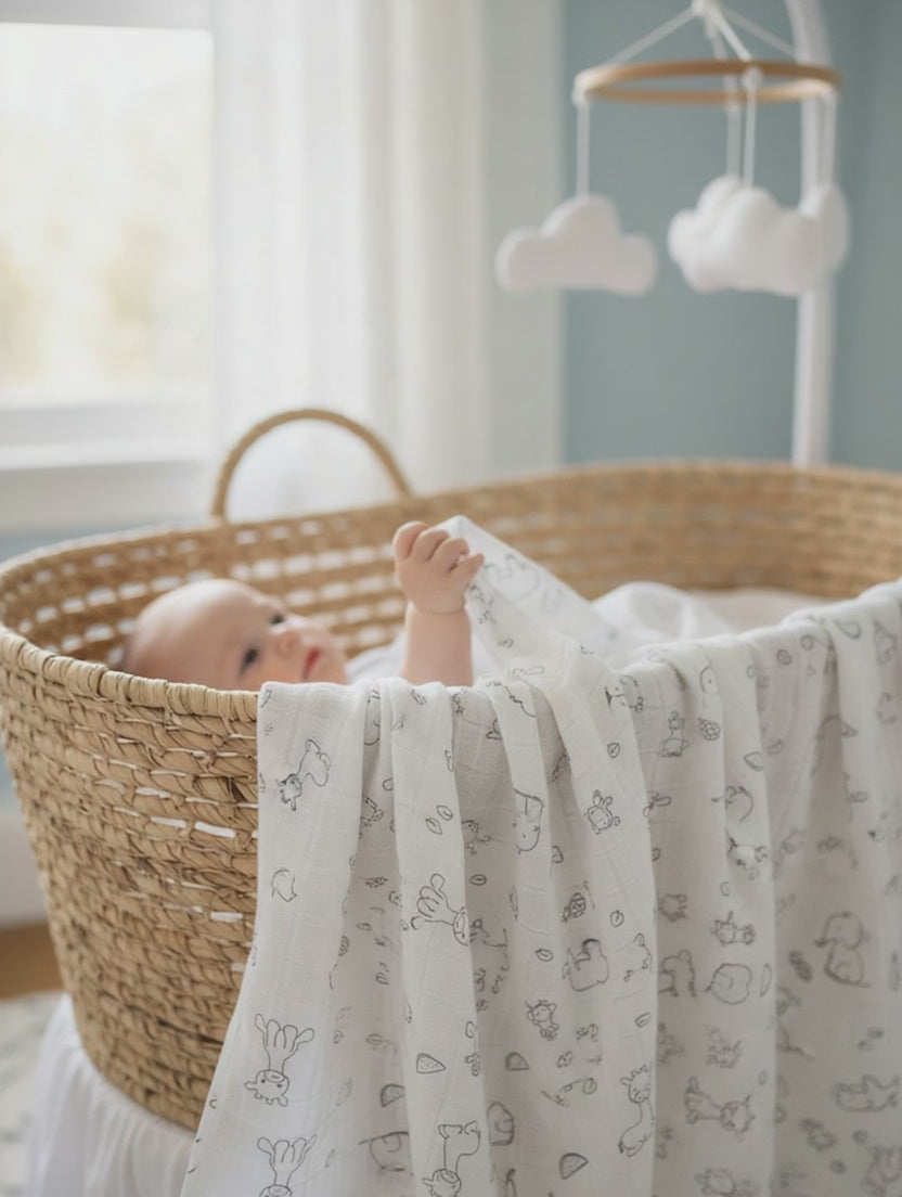 Yumuşacık bambu müslin dokusuyla bebeğinizi nazikçe sarar. Nefes alan yapısı sayesinde terletmez, dört mevsim rahatlıkla kullanılır.